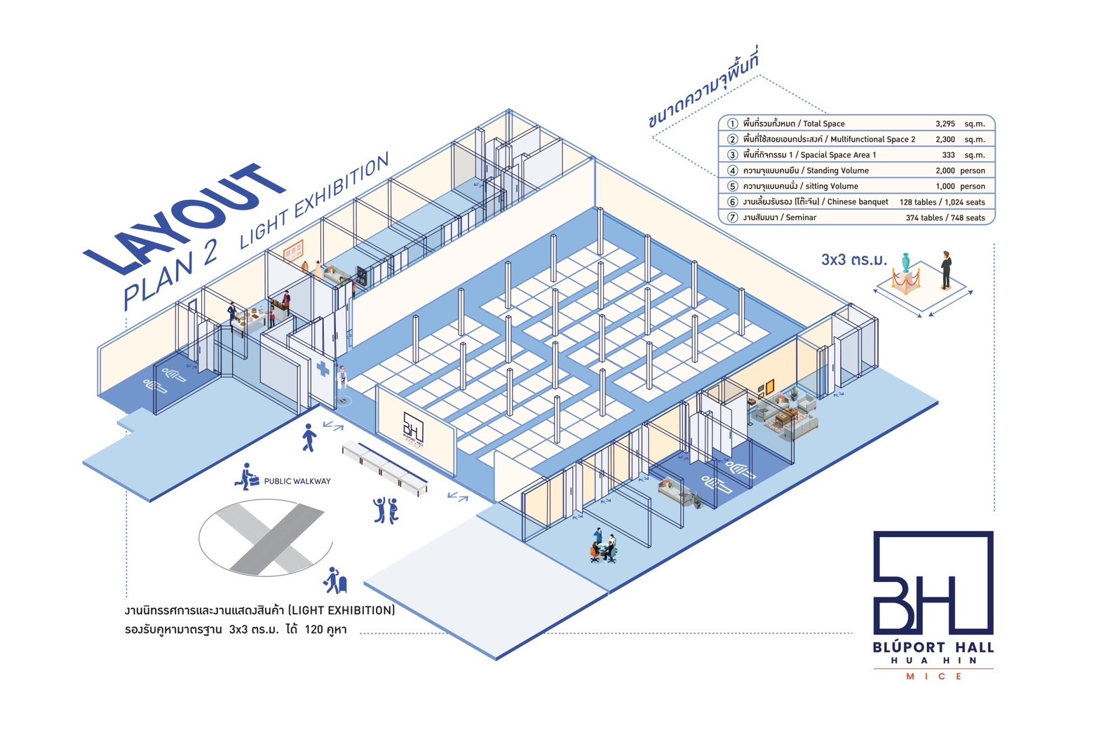 Total SpaceMultifunctional SpaceStanding VolumeSitting VolumeChinese BanquetSeminar