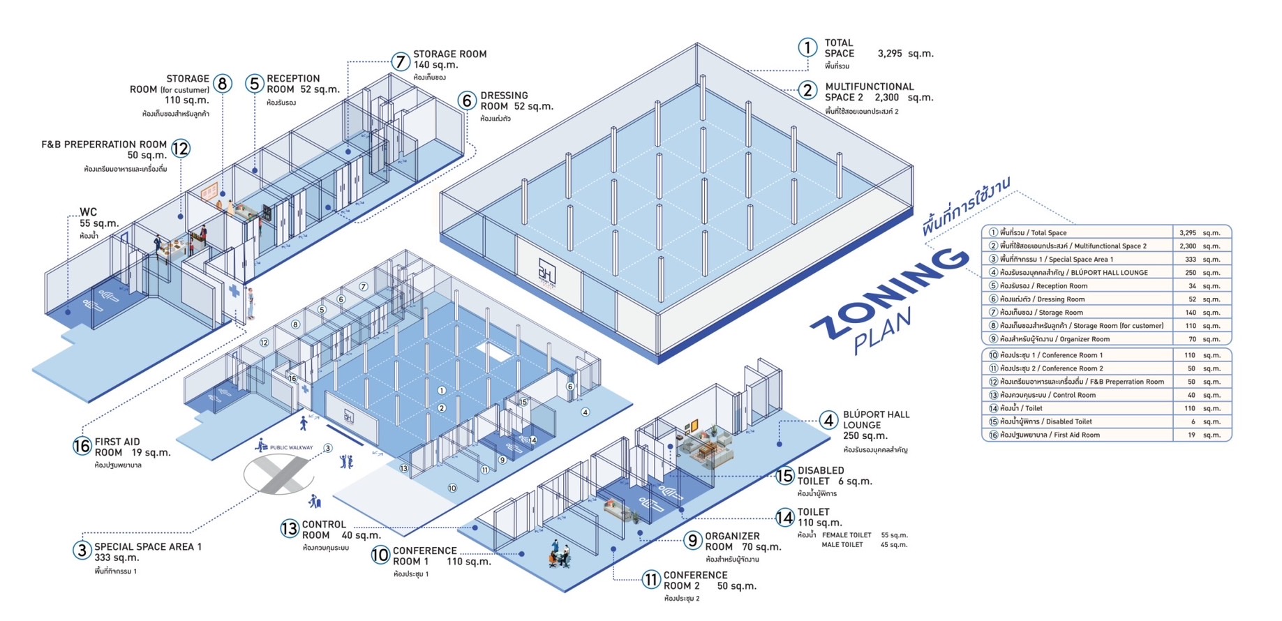 Total SpaceMultifunctional SpaceStanding VolumeSitting VolumeChinese BanquetSeminar